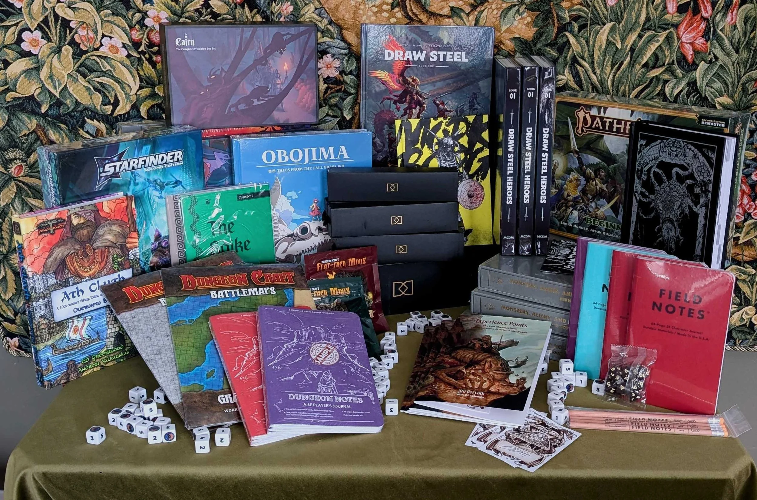 CTGA has been blessed to be supported not only by our community members but also by local businesses and TTRGP creators around the world. They donated source books, modules, handmade dice, maps, and dozens of other prizes for our raffle.